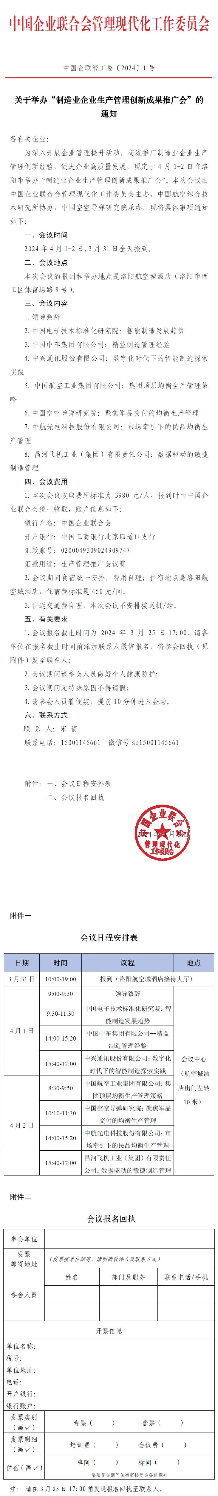 关于举办“制造业企业生产管理创新成果推广会”的通知